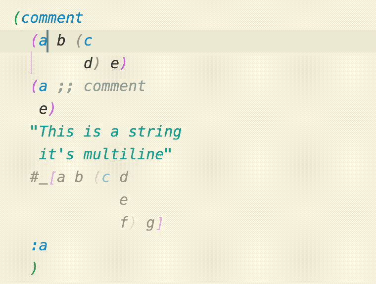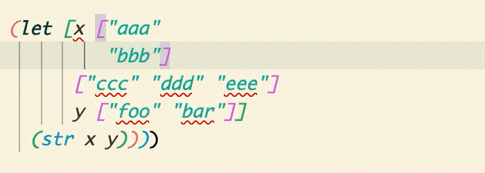 Calva Paredit helps you navigate, select and edit Clojure code in a structural way. LISP isn't line or character oriented, it is based around S-expressions, a.k.a forms. We strongly recommend that you take advantage of the structural nature of Clojure, and have therefore put a lot of work into making Calva Paredit extra awesome.
