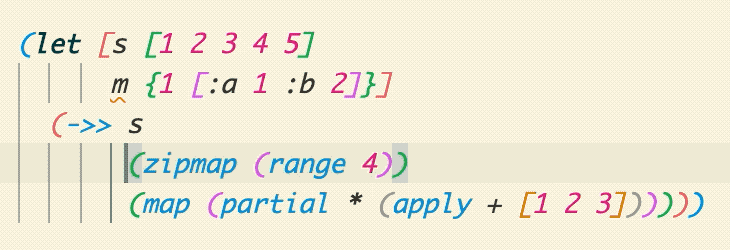 ;; Inside thread-first: offset 1 (function only, map is threaded in)